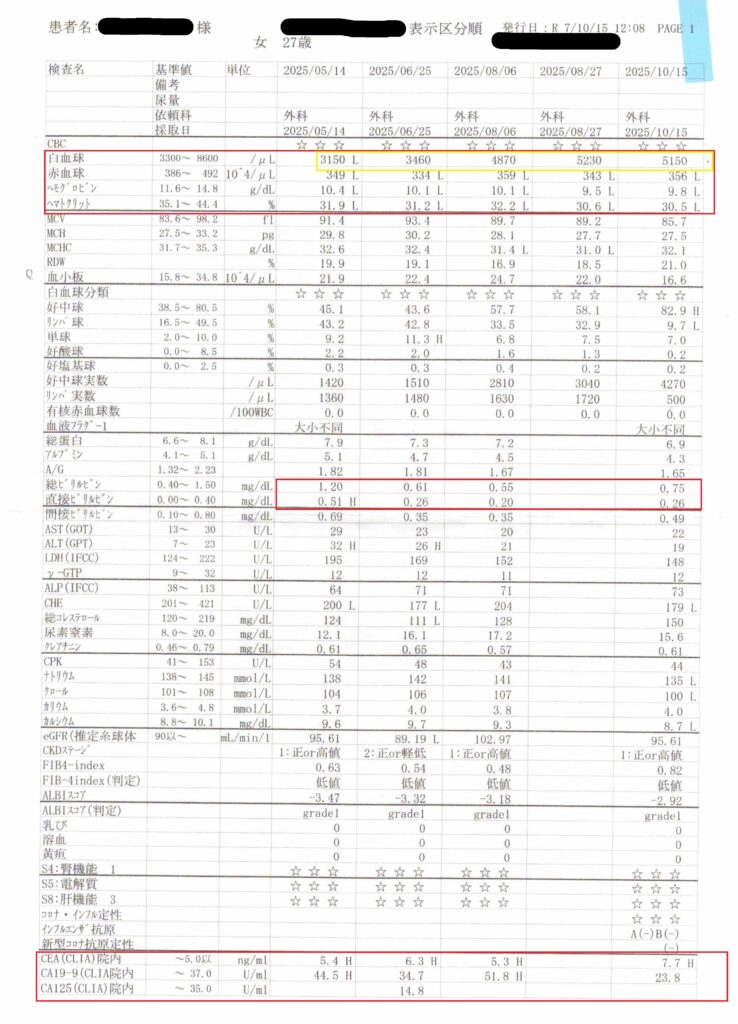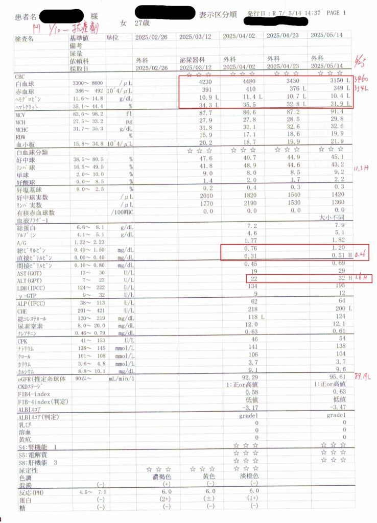 この血液検査の内容、通院していく中での、血液検査結果の変化の度合いなども鑑みて、