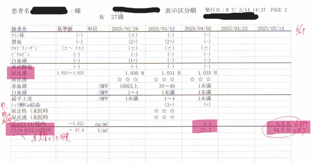 ただ、症状がまだ強くあることが、薬の影響なのか、検査上悪化しているマーカー数値から読み取れる胃癌のせいなのかは、まだわかりませんね。