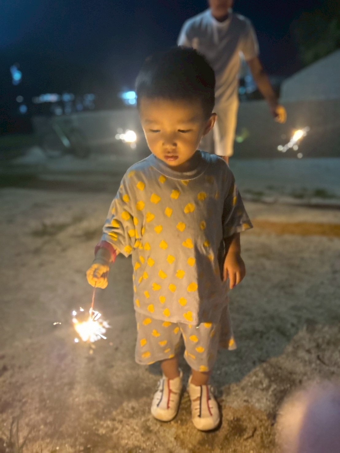 お盆は親戚であつまり、初めての手持ち花火をしました!